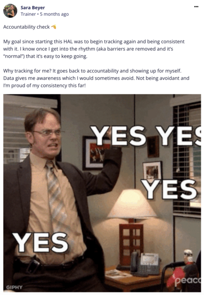 Accountability check-ins and group challenges