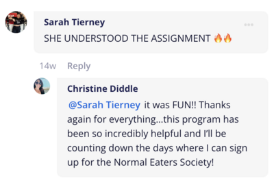 This is where you practice eating like a normal eater during the most challenging food season of the year, with support from people who get it.